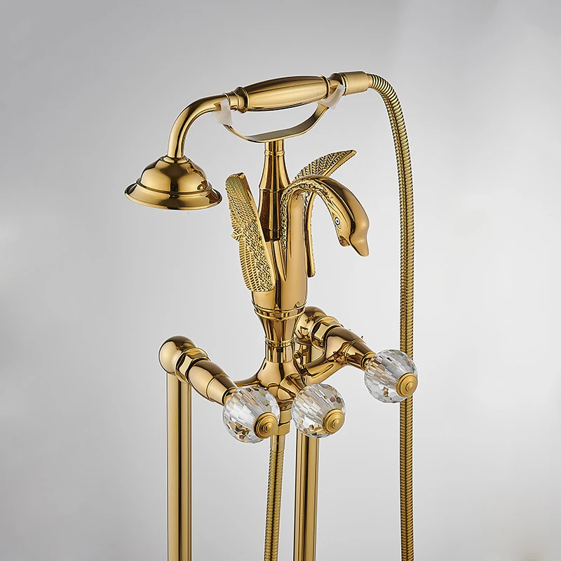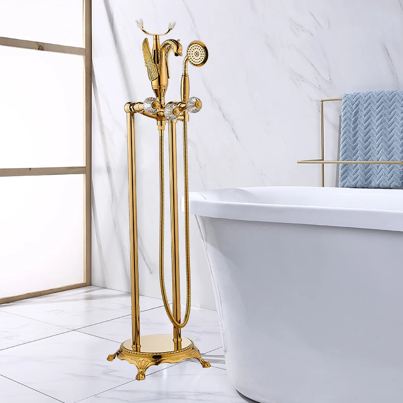 Product Name: Bathtub Mixer Swan Bath Tub Sink Faucets Set Floor Mounted Free Standing Hot And Cold Bath Shower Set Gold Brass Hand Shower Tap